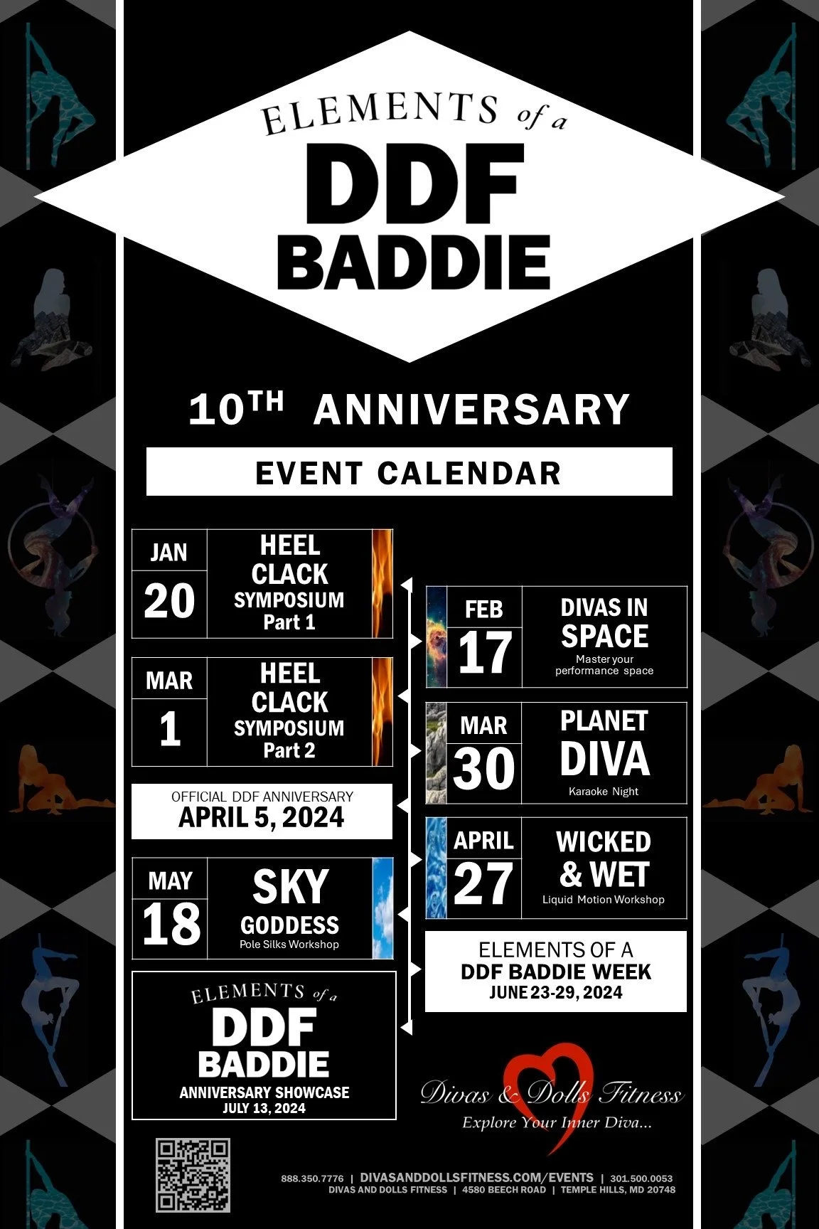 Divas & Dolls Fitness 10th Anniversary Sponsorship Opportunities are now available! The theme this year is “Elements of a DDF Baddie”. Download our sponsorship guide and choose your package to become an official anniversary sponsor.